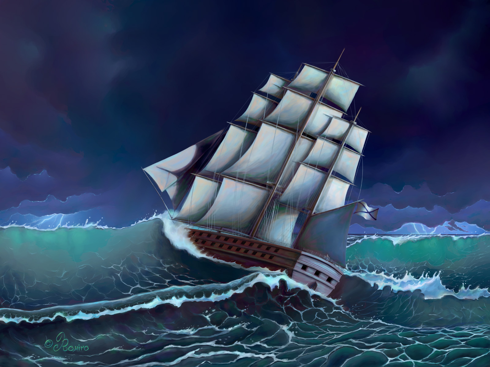 Обои Парусник в шторм