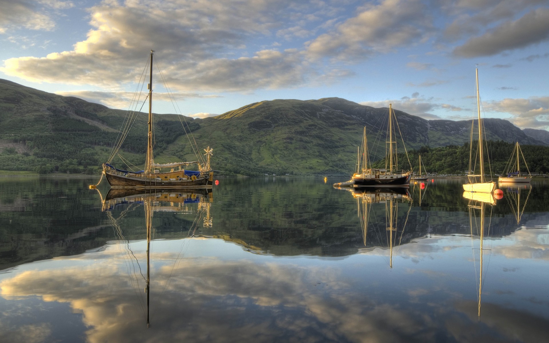 Скачать обои для рабочего стола Парусники стоят в заливе и фото