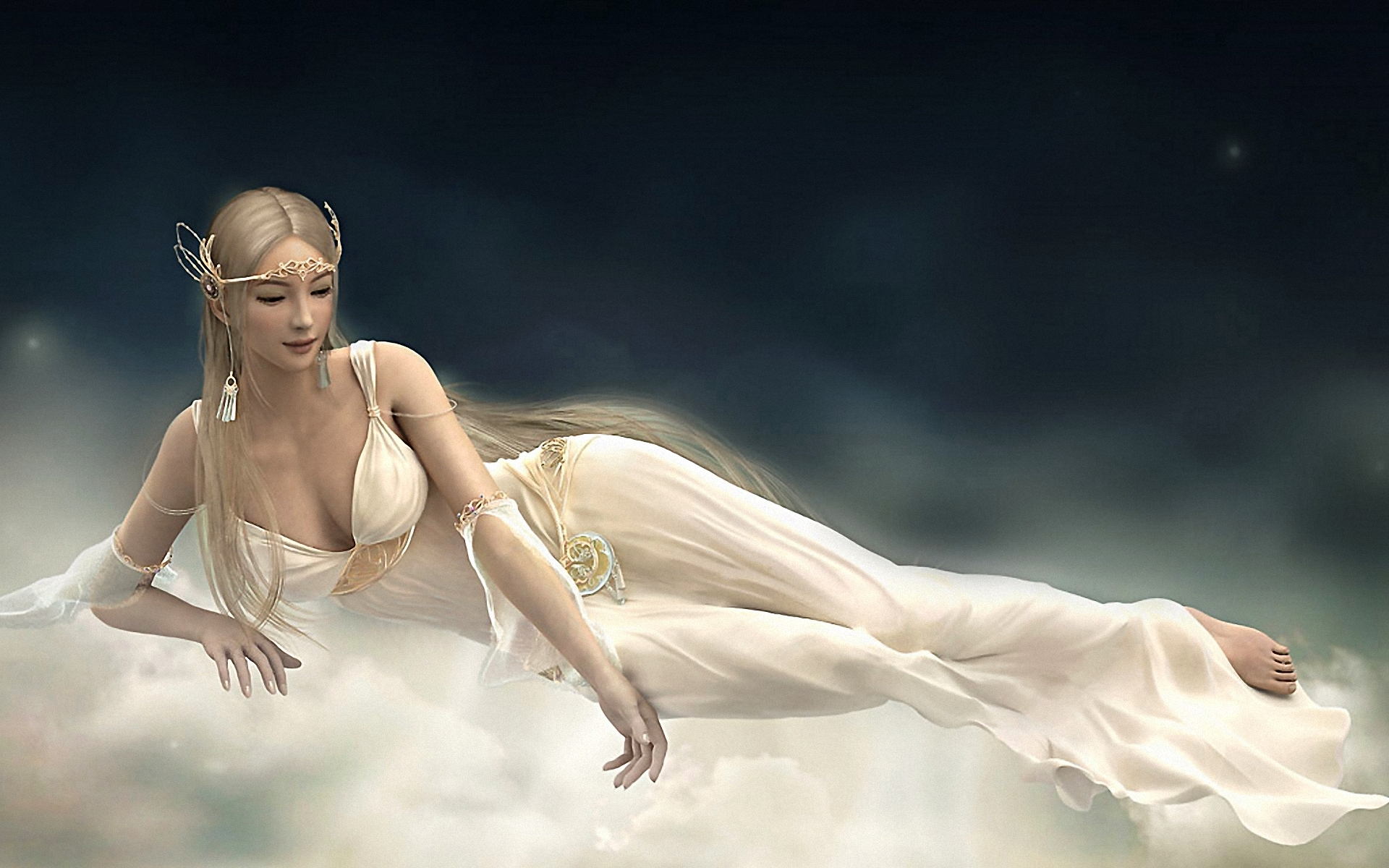 Обои Парящая на облаке