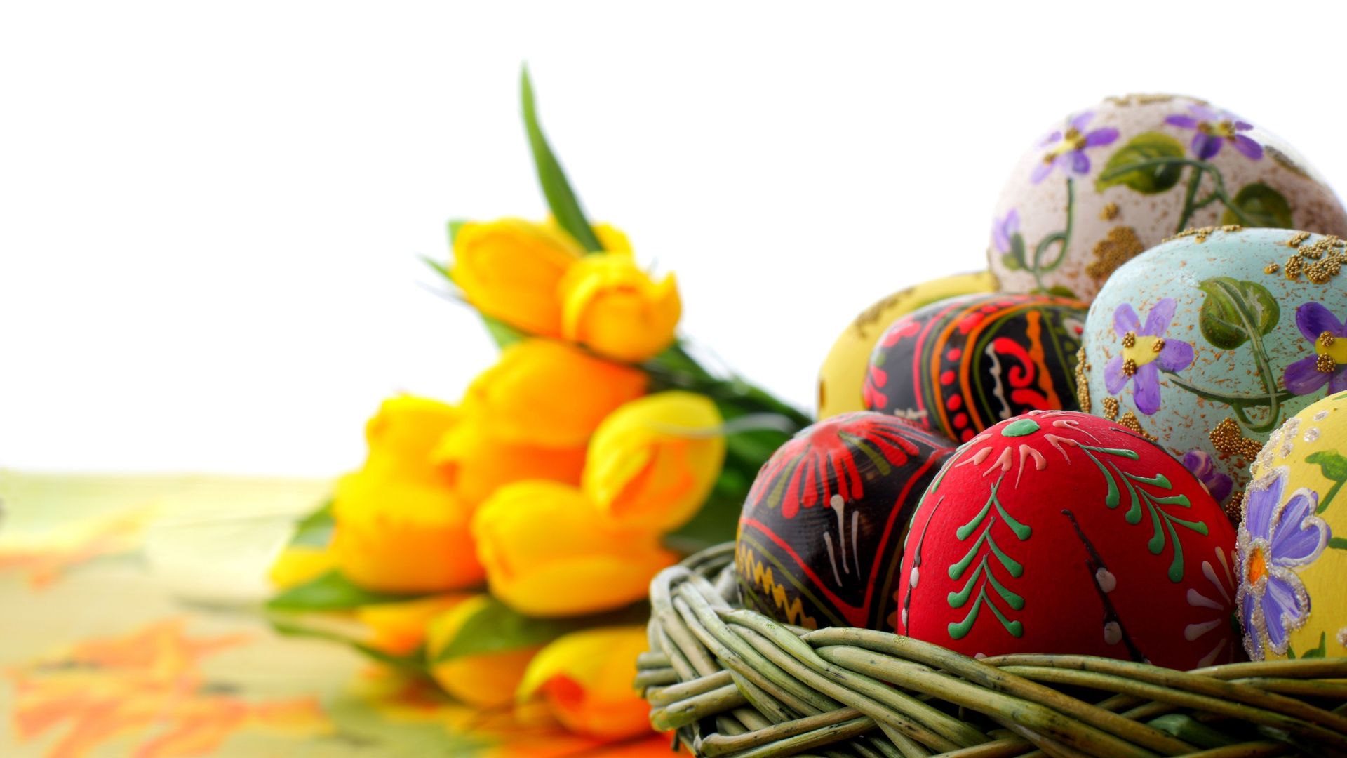 Скачать обои для рабочего стола Пасхальные яйца в корзине и фото