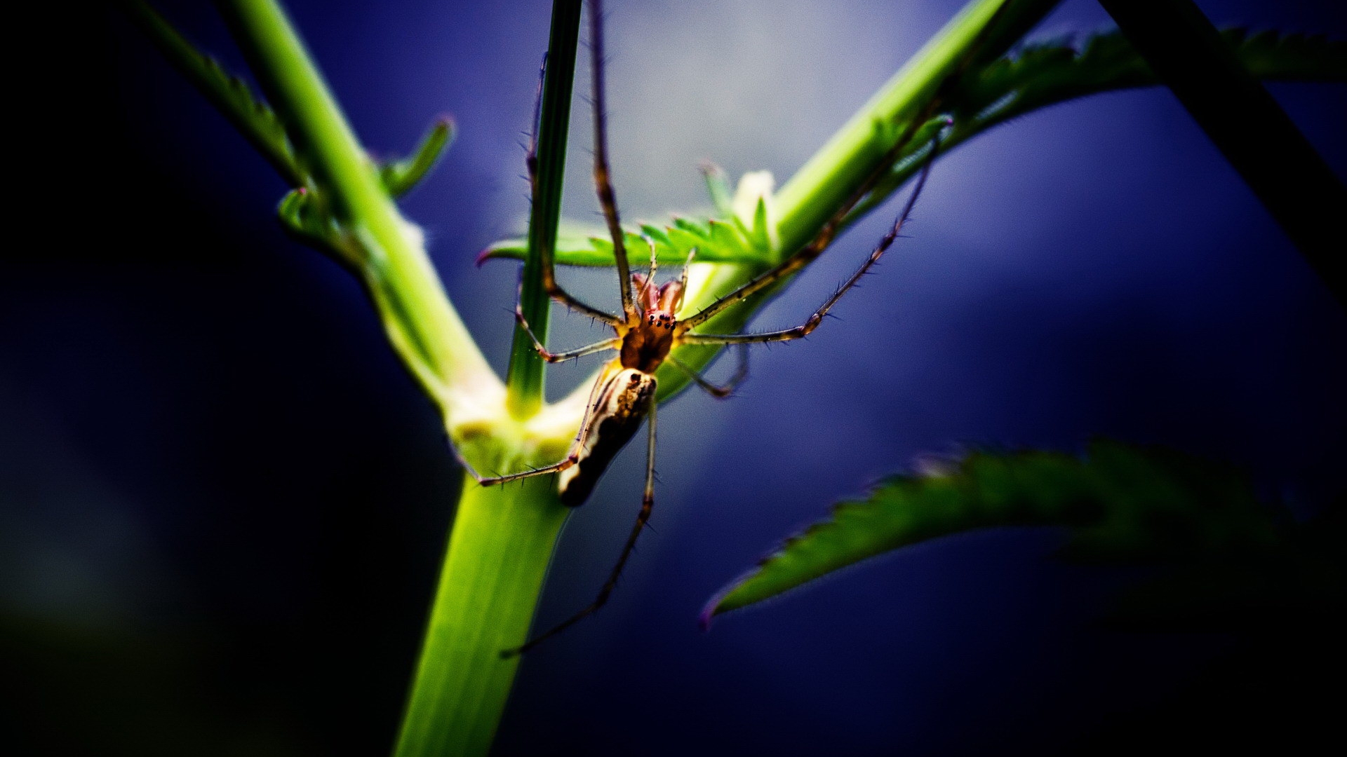 Скачать обои для рабочего стола Паук на зеленом растении и фото