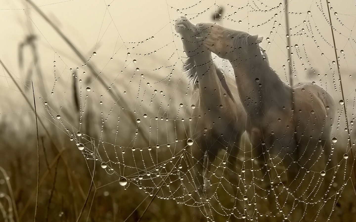 Скачать обои для рабочего стола Паутина на фоне лошадей и фото