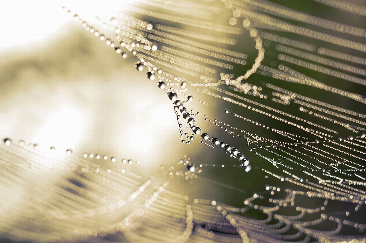 Скачать обои для рабочего стола Паутинка с каплями дождя и фото