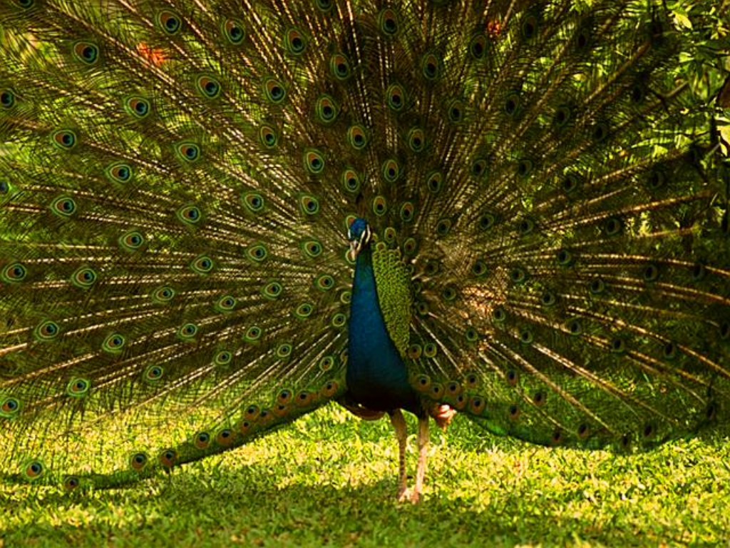 Скачать обои для рабочего стола Павлин распускает хвост и фото
