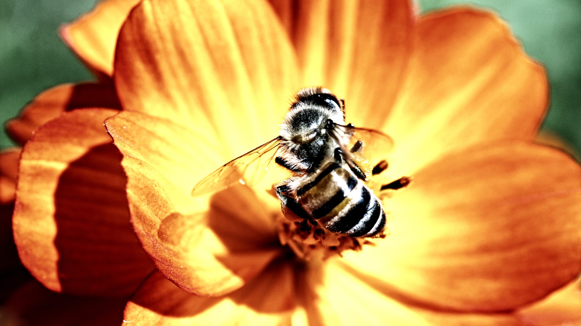 Скачать обои для рабочего стола Пчела и солнечный цветок и фото