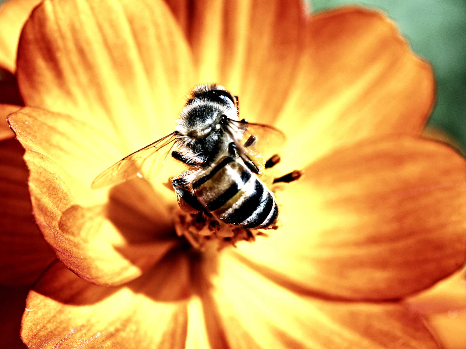 Скачать обои для рабочего стола Пчёлка на жёлтом цветке и фото