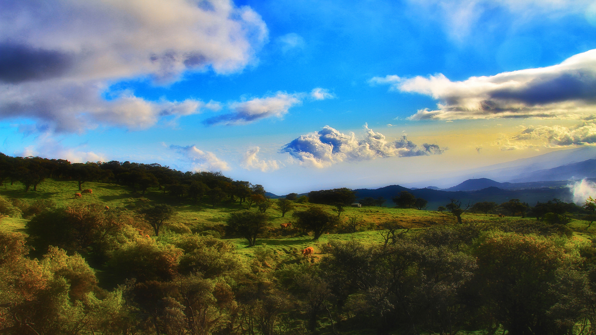 Скачать обои для рабочего стола Пейзаж местности с садами и фото