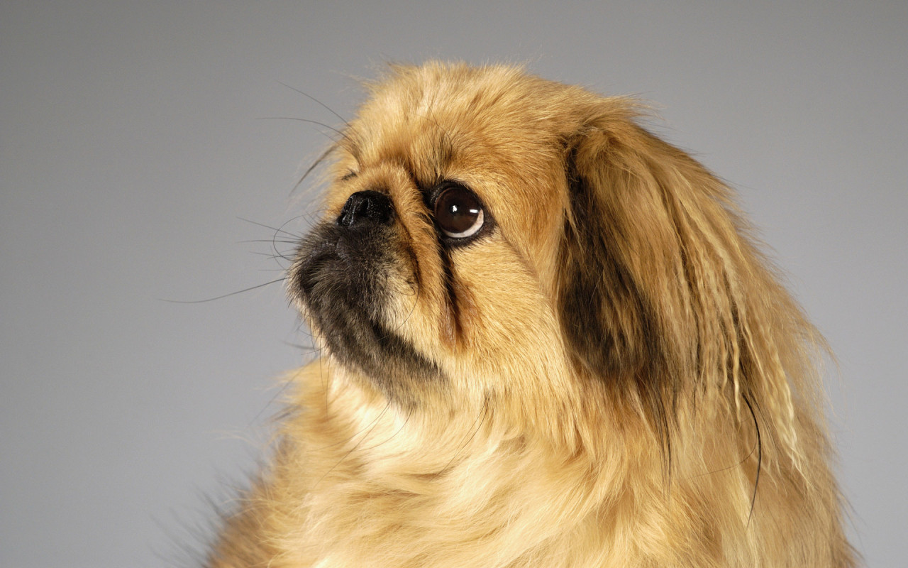Скачать обои для рабочего стола Пекинес на сером фоне и фото