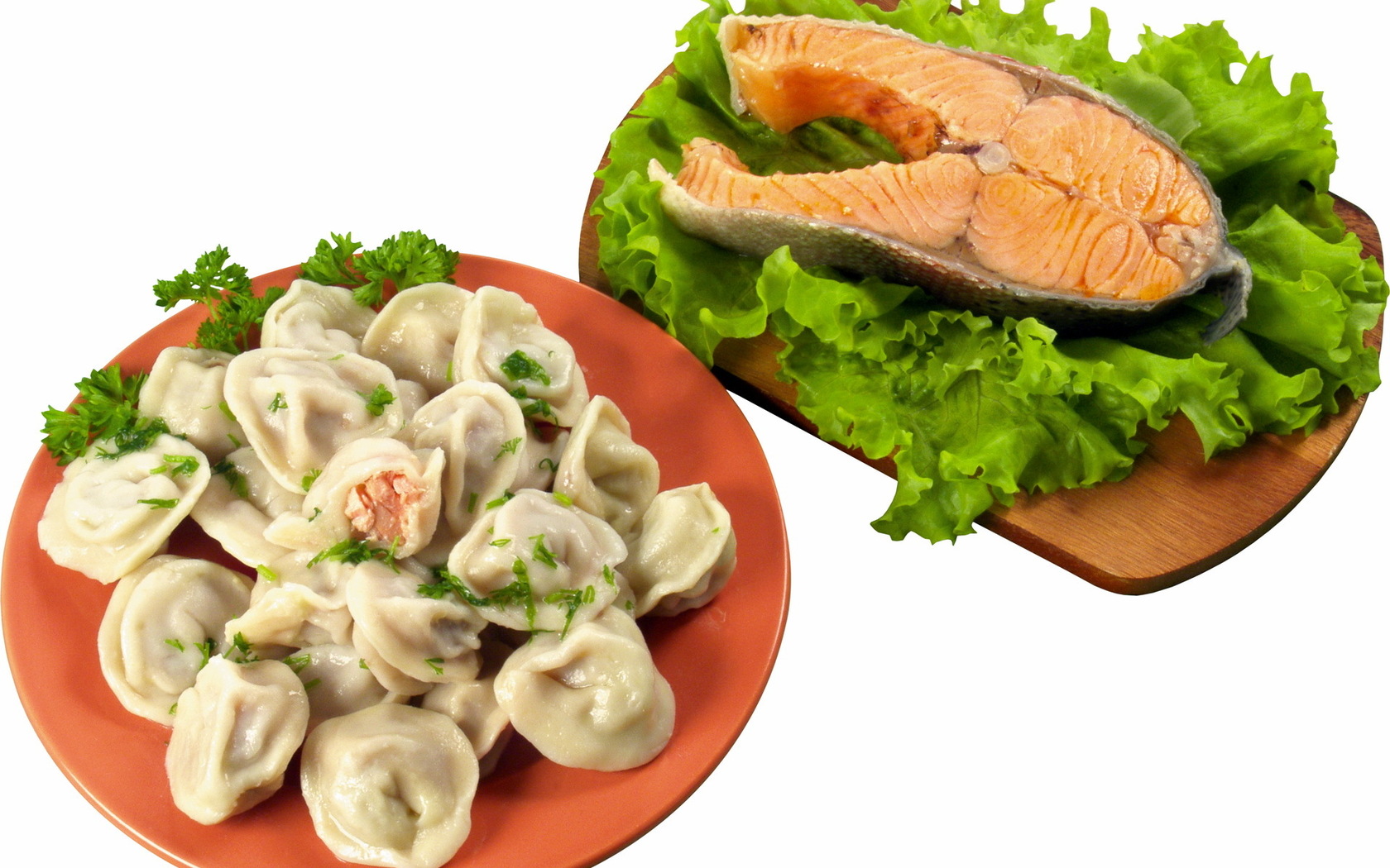 Скачать обои для рабочего стола Пельмени и рыба и фото
