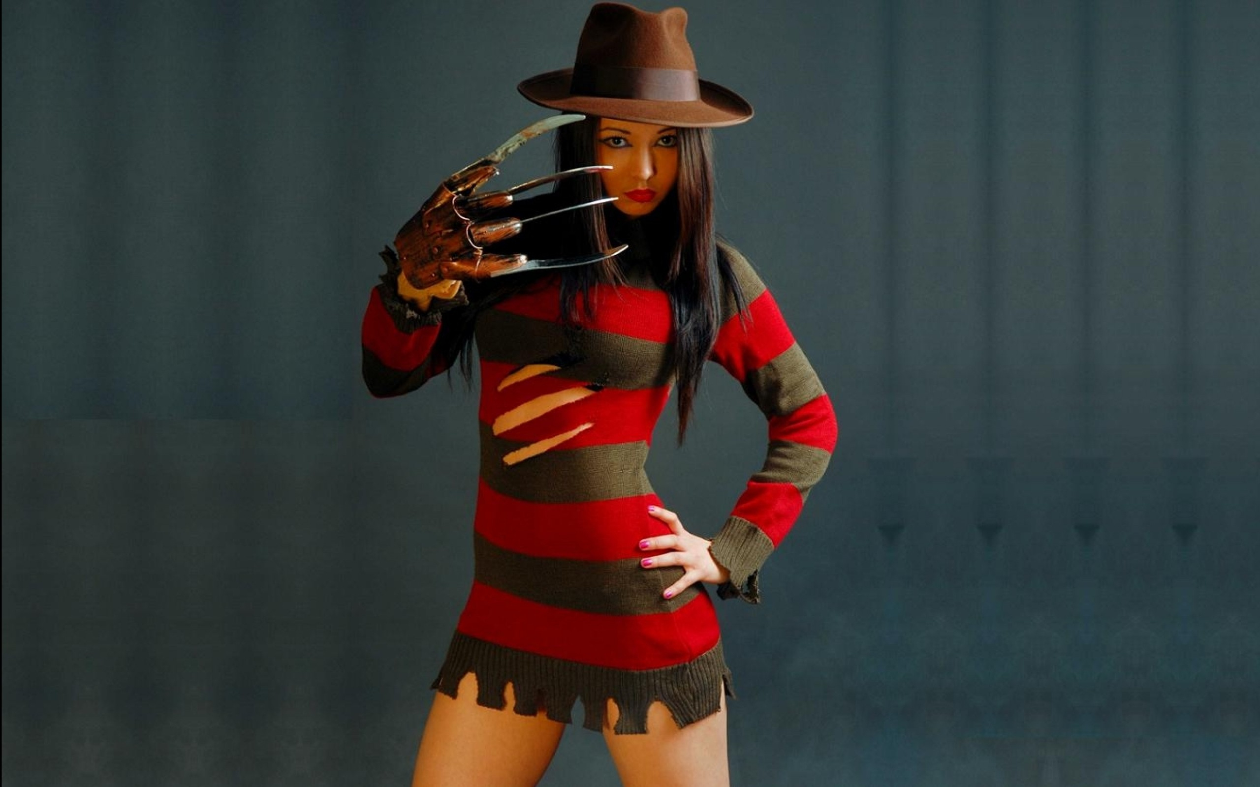 Скачать обои для рабочего стола Перчатка с когтями на руке у девушки и фото