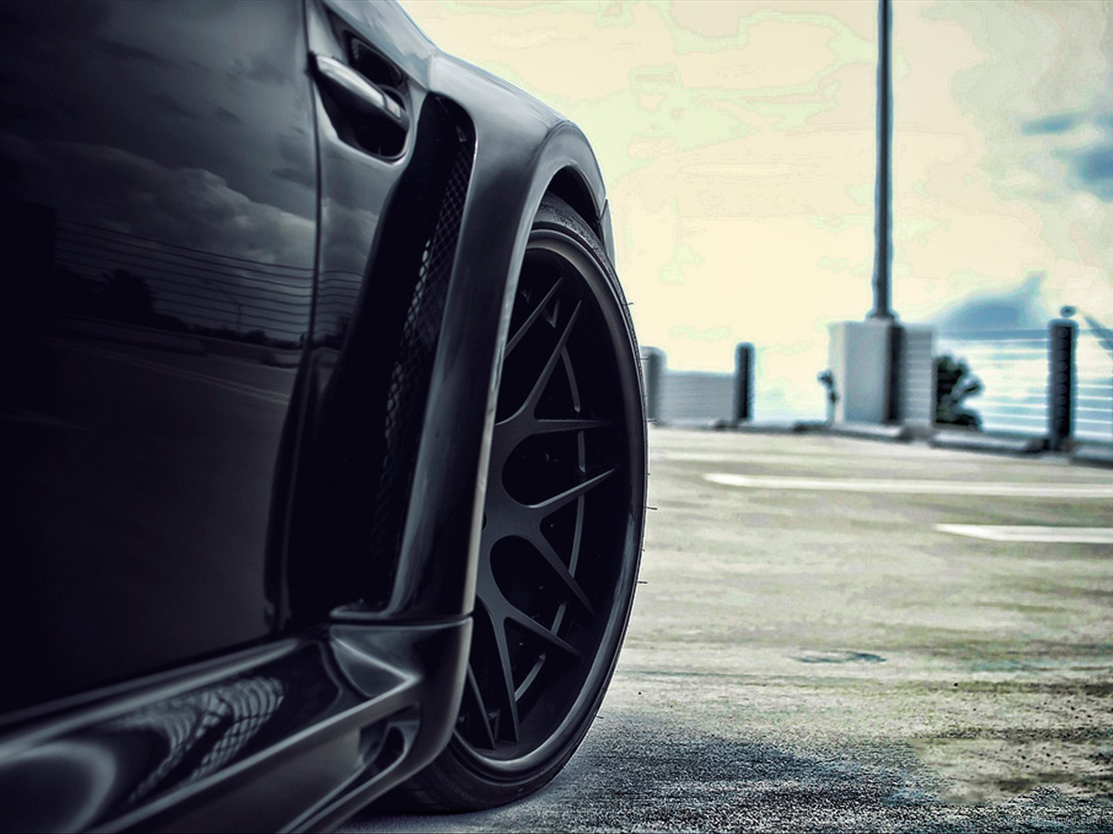 Скачать обои для рабочего стола Переднее колесо черного автомобиля и фото