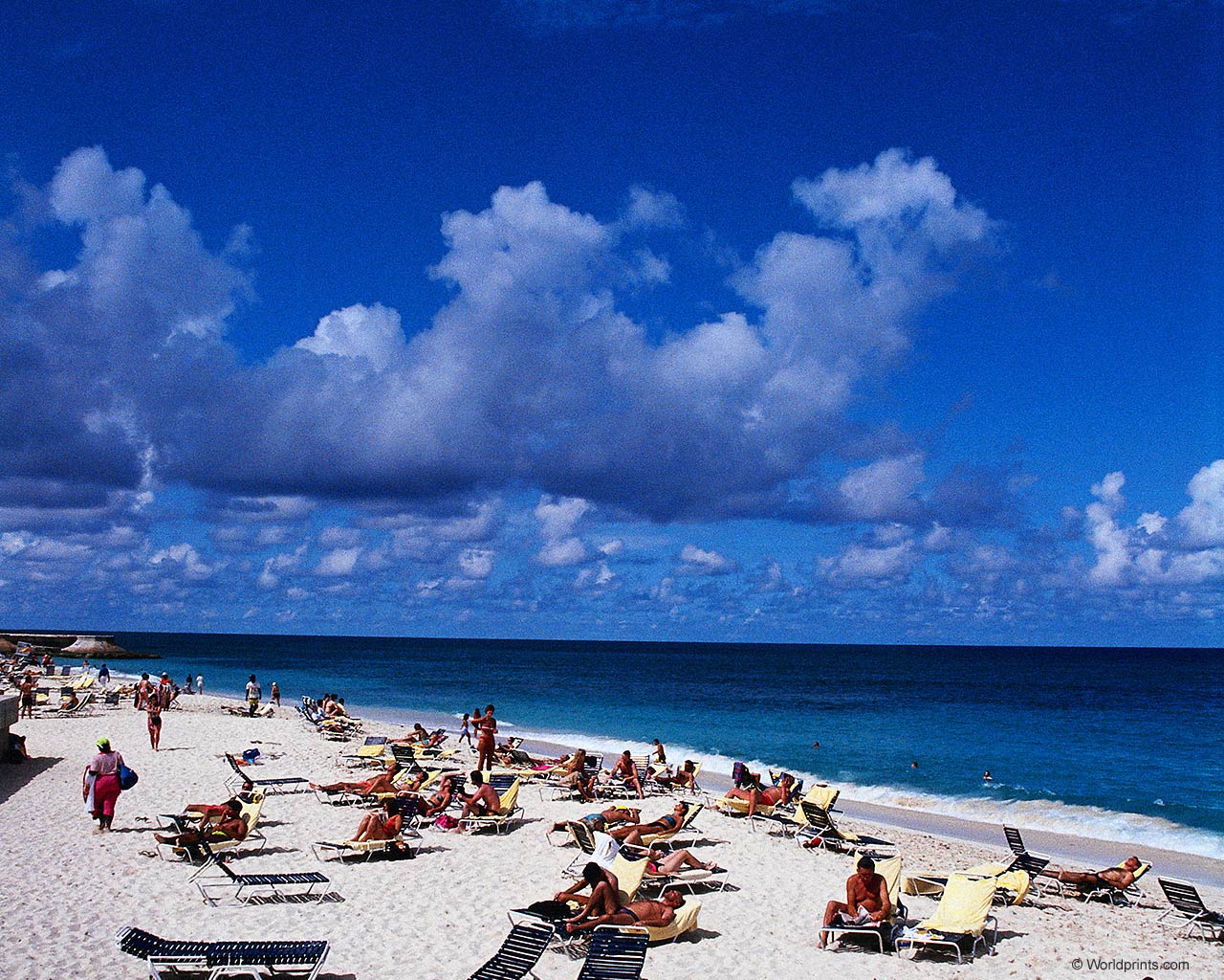 Скачать обои для рабочего стола Переполненный пляж на Багамах и фото