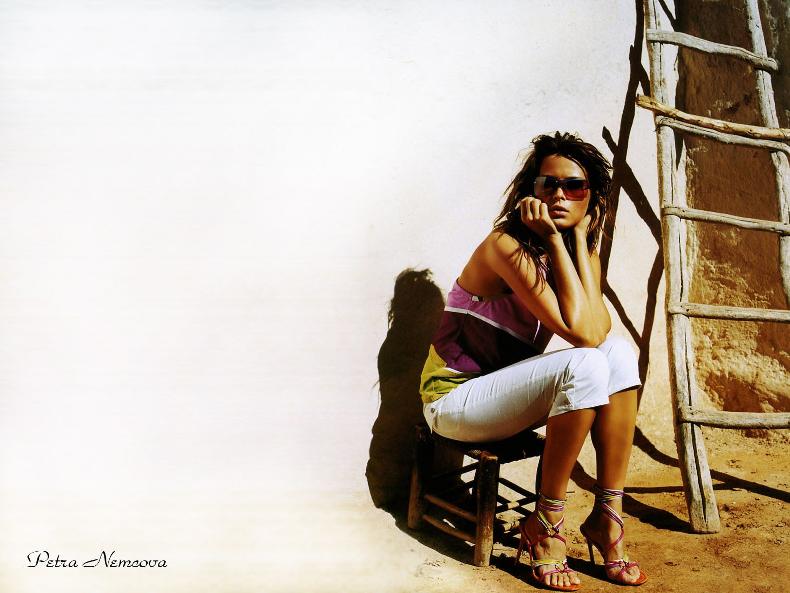 Похожие обои на Петра Немцова на табуретке у стены: