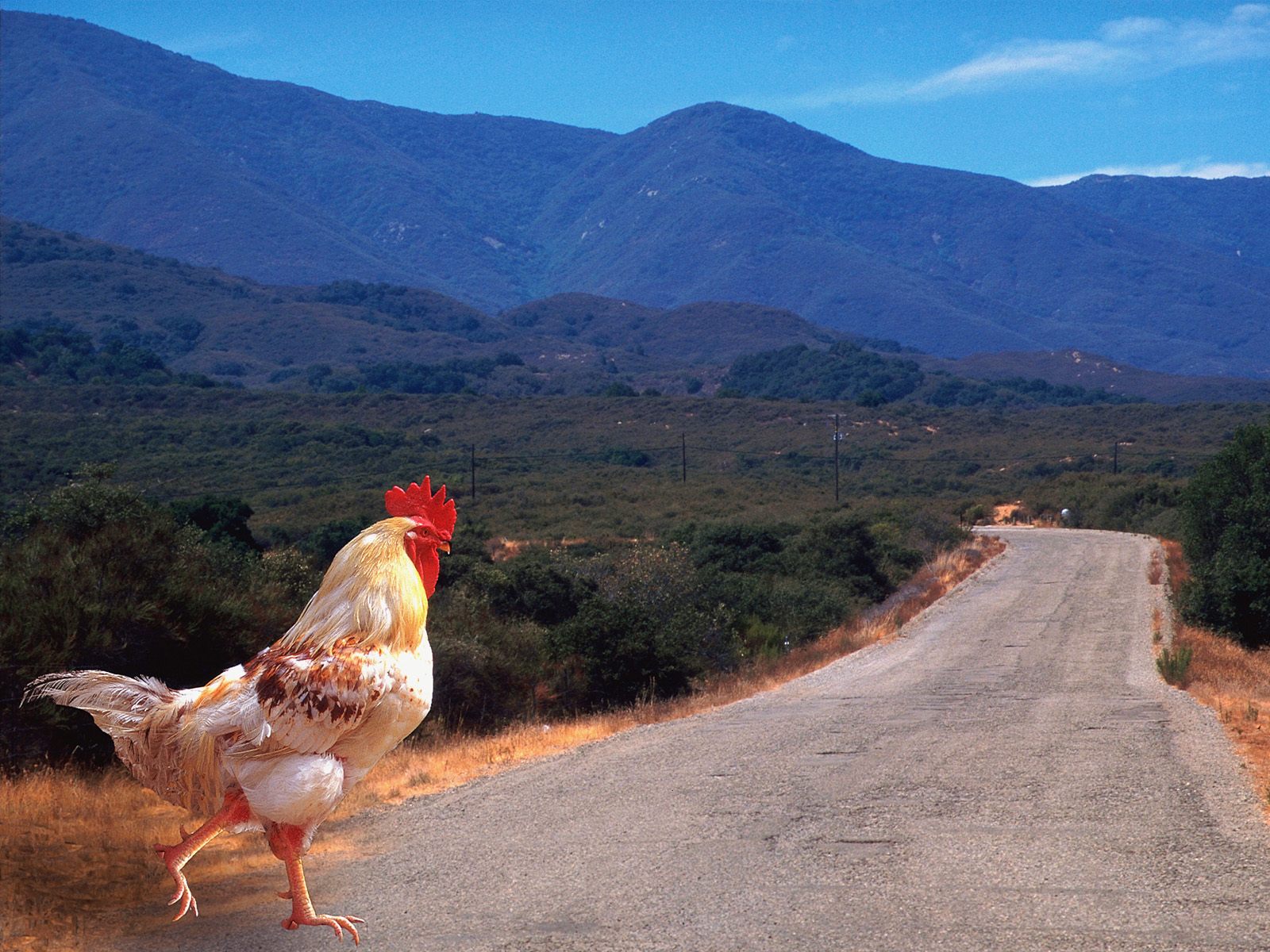Скачать обои для рабочего стола Петух переходит дорогу и фото