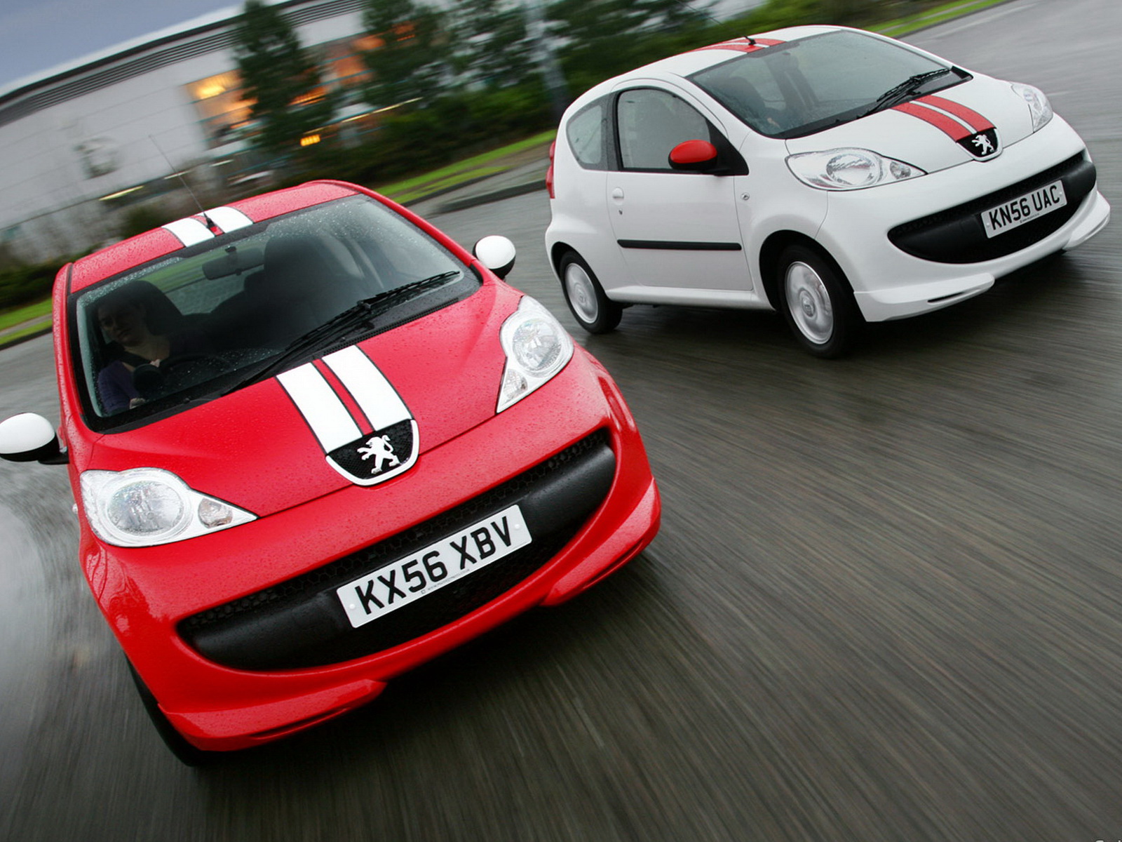 Скачать обои для рабочего стола Peugeot 107 sport XS вид двух машин и фото