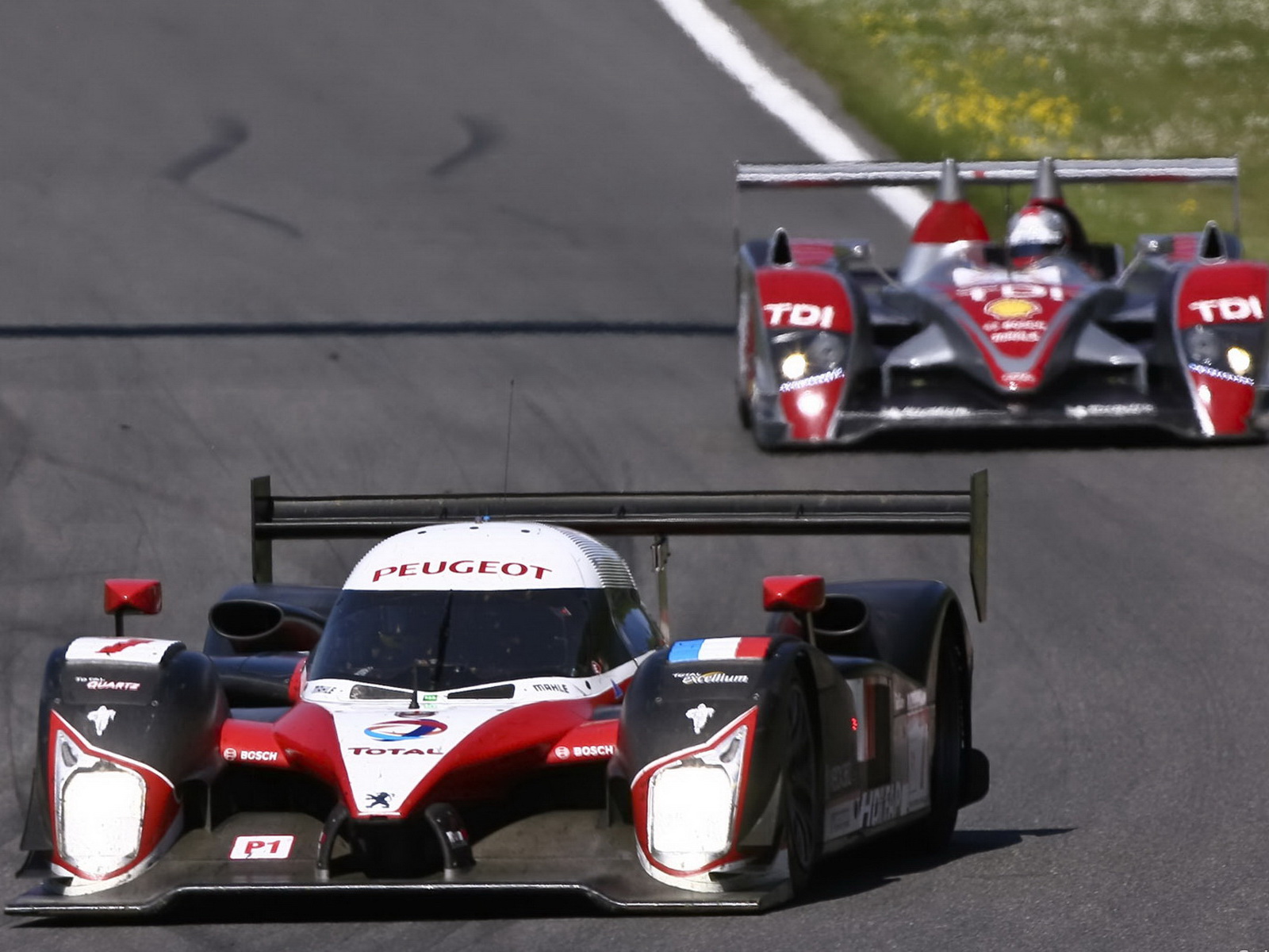 Скачать обои для рабочего стола Peugeot 908 вид авто под углом к проекции и фото