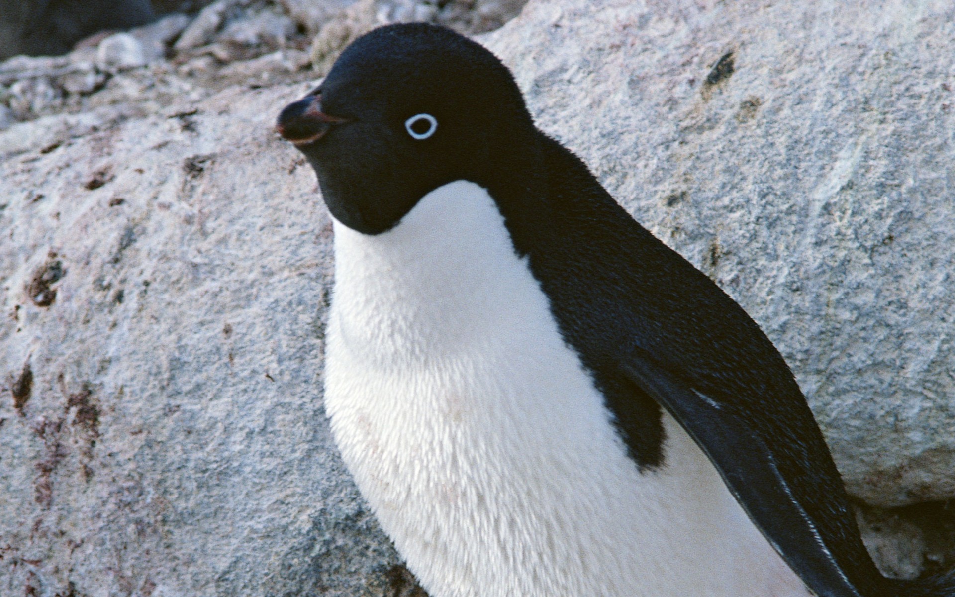 Скачать обои для рабочего стола Пингвин у камня и фото