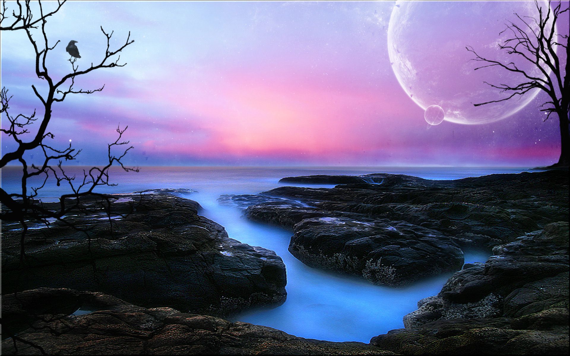 Обои Планеты над рекой
