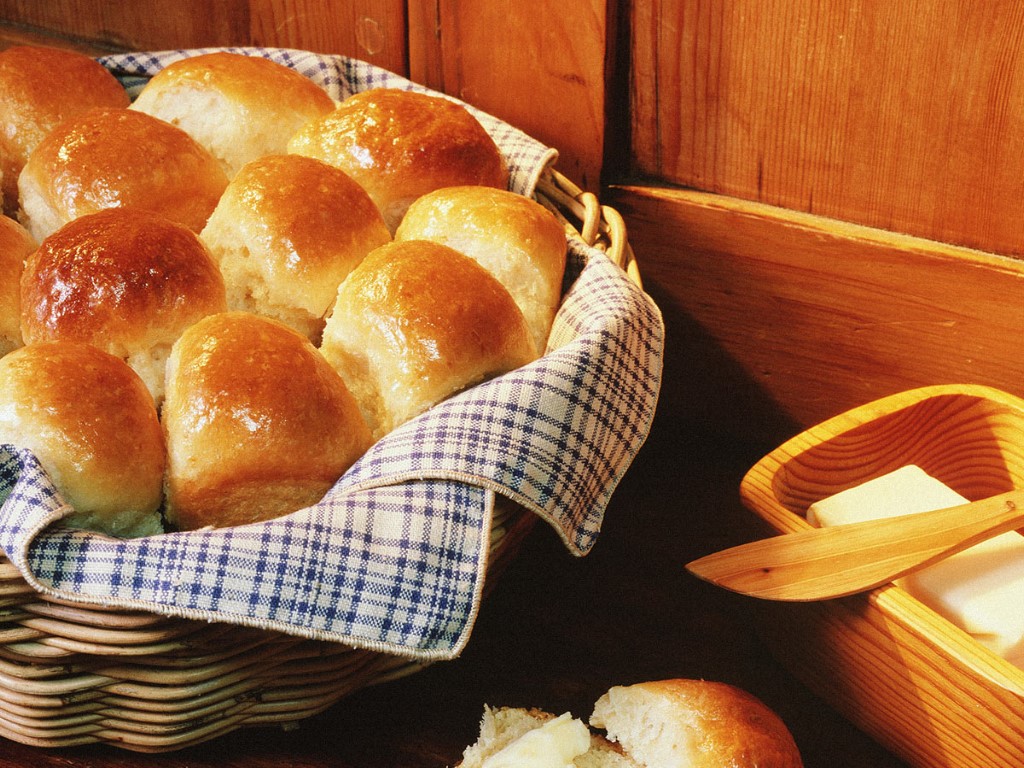 Скачать обои для рабочего стола Плетёнка с медовыми булочками и фото