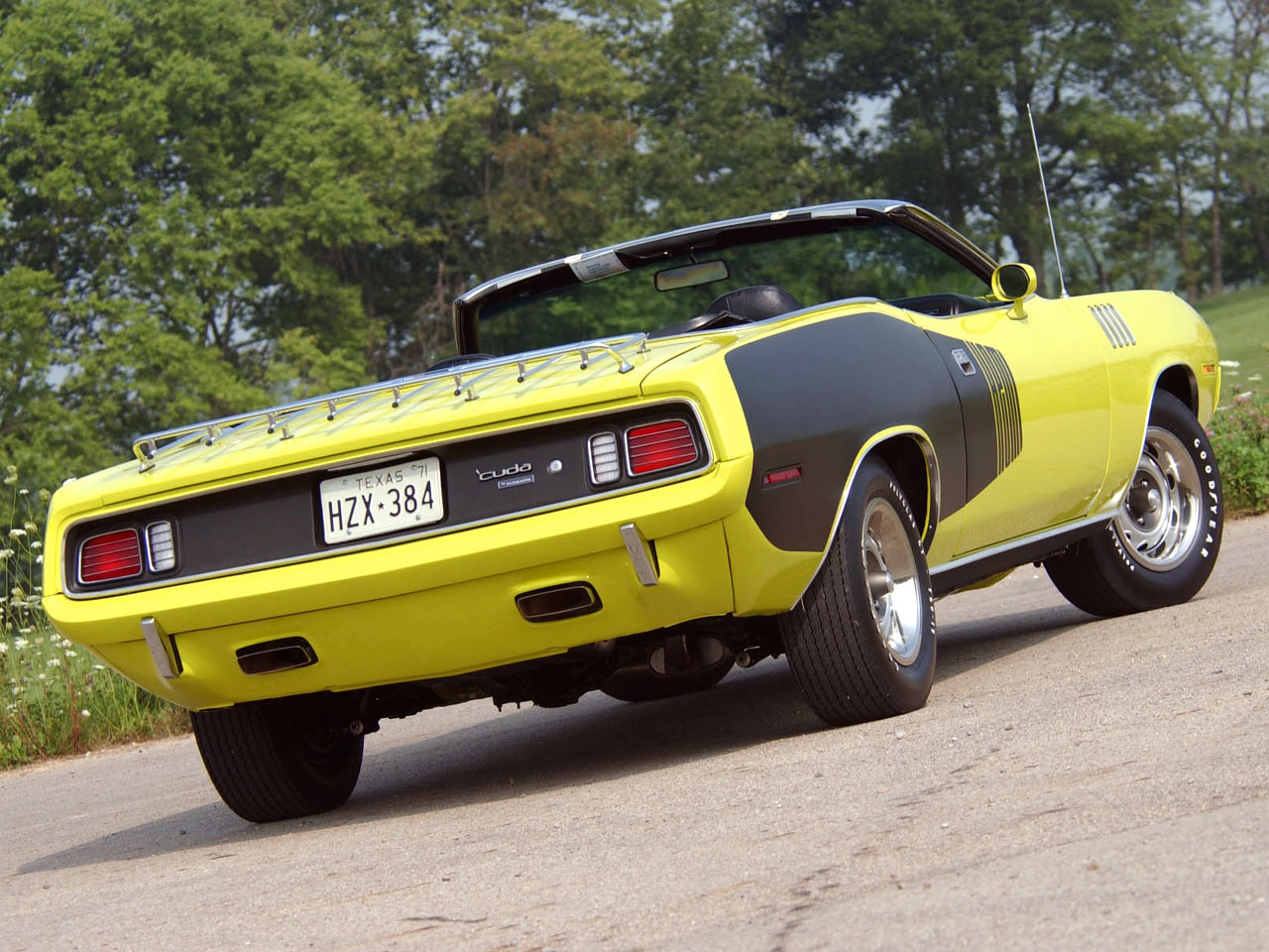 Скачать обои для рабочего стола Plymouth Hemi Cuda Convertible 1971 зад и фото