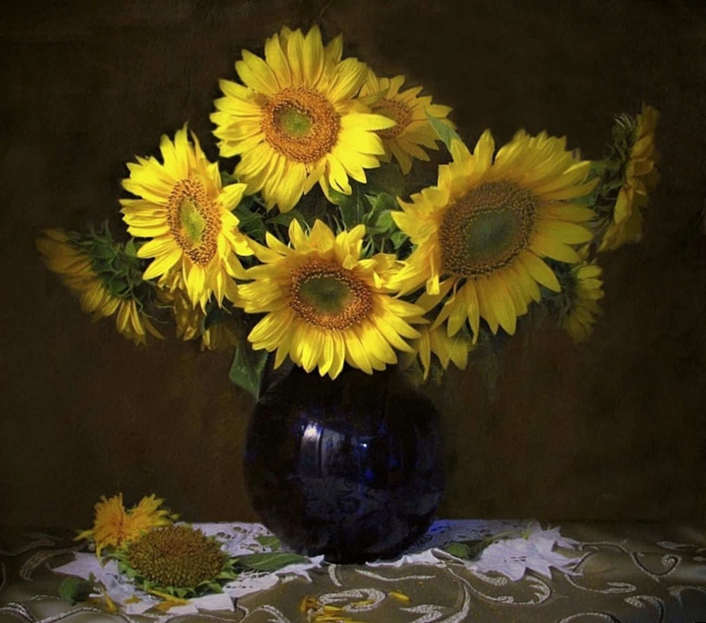 Скачать обои для рабочего стола Подсолнухи в вазе и фото