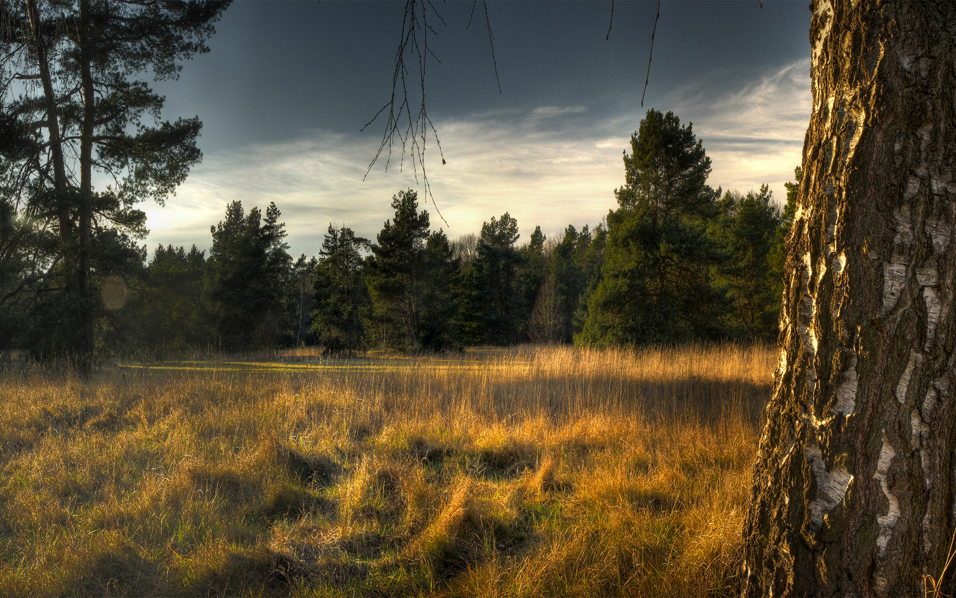 Скачать обои для рабочего стола Поле перед лесом и фото