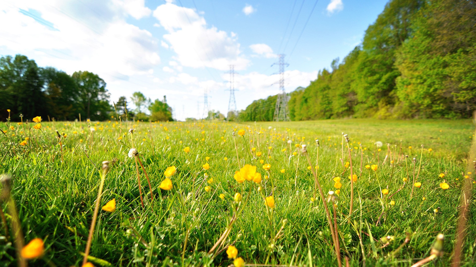 Скачать обои для рабочего стола Поле разнотравья у леса и фото