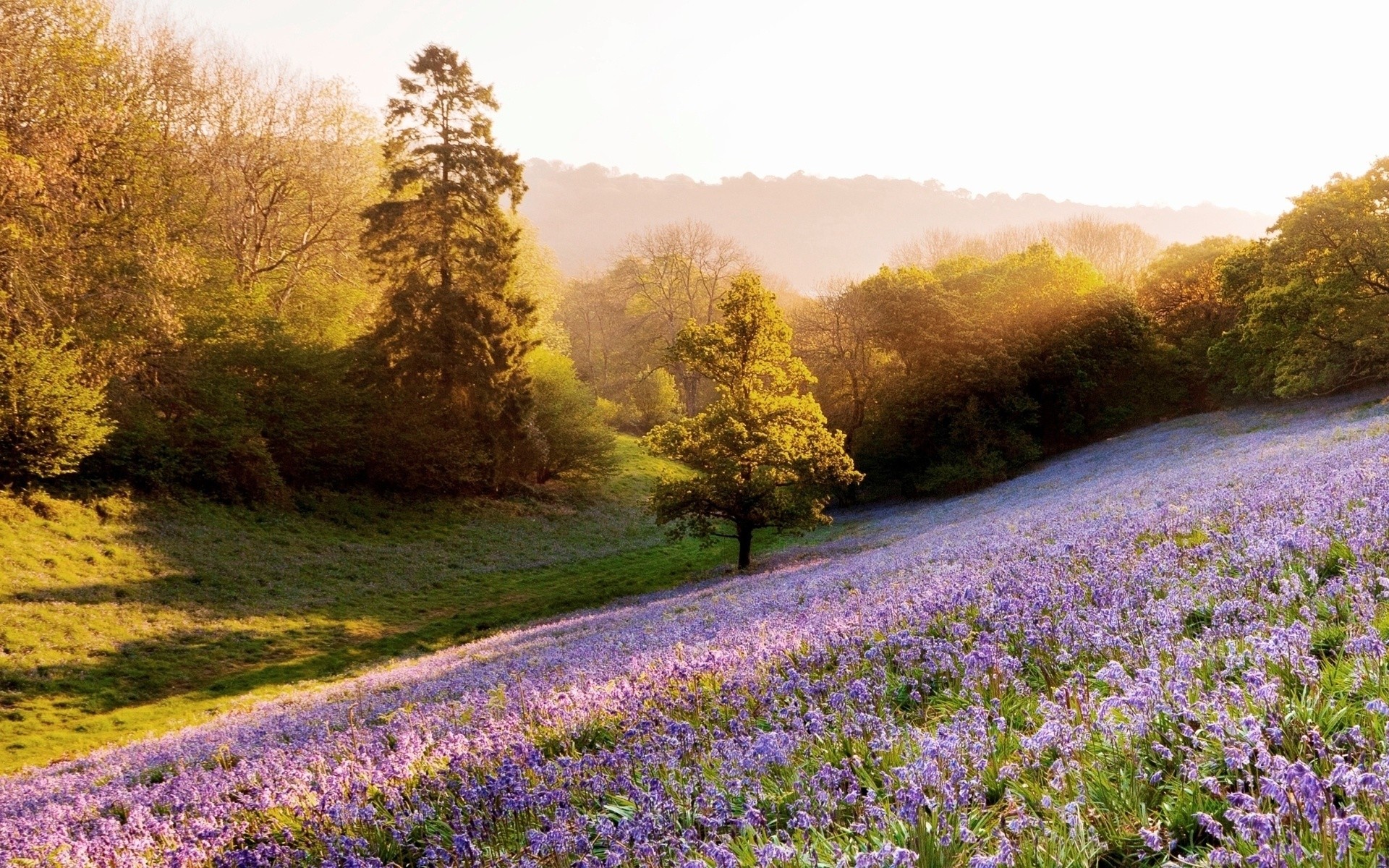 Скачать обои для рабочего стола Поле сиреневых цветов и фото