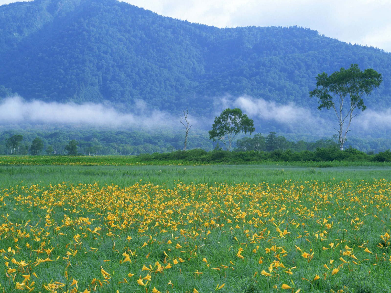 Скачать обои для рабочего стола Полевые цветы на зеленой траве и фото