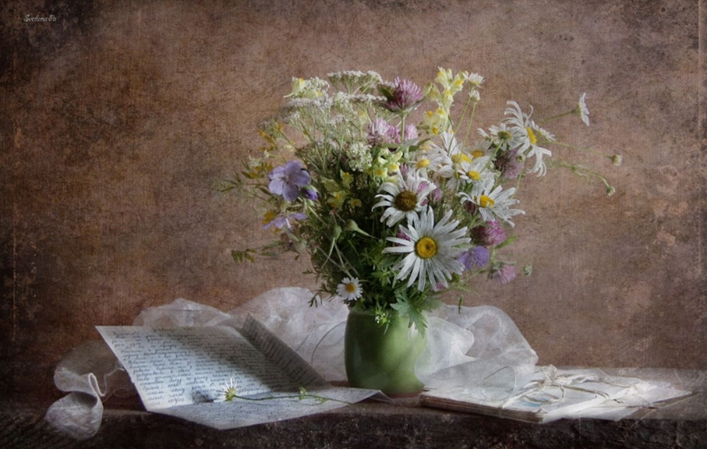 Скачать обои для рабочего стола Полевые цветы в банке и фото