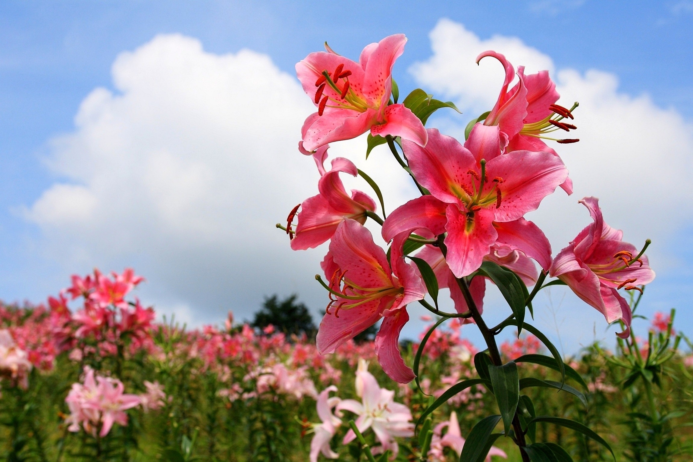 Скачать обои для рабочего стола Поляна распустившихся лилий и фото