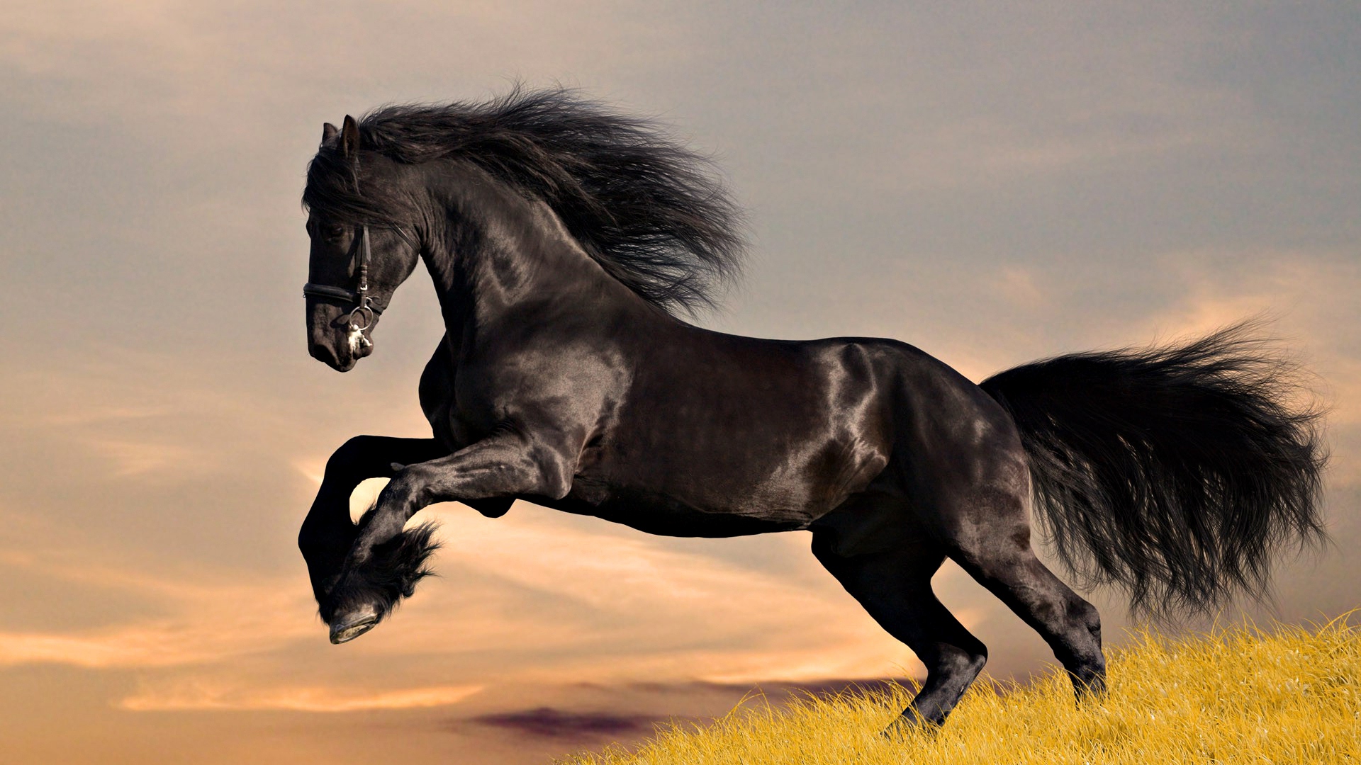 Скачать обои для рабочего стола Породистый конь черный и фото