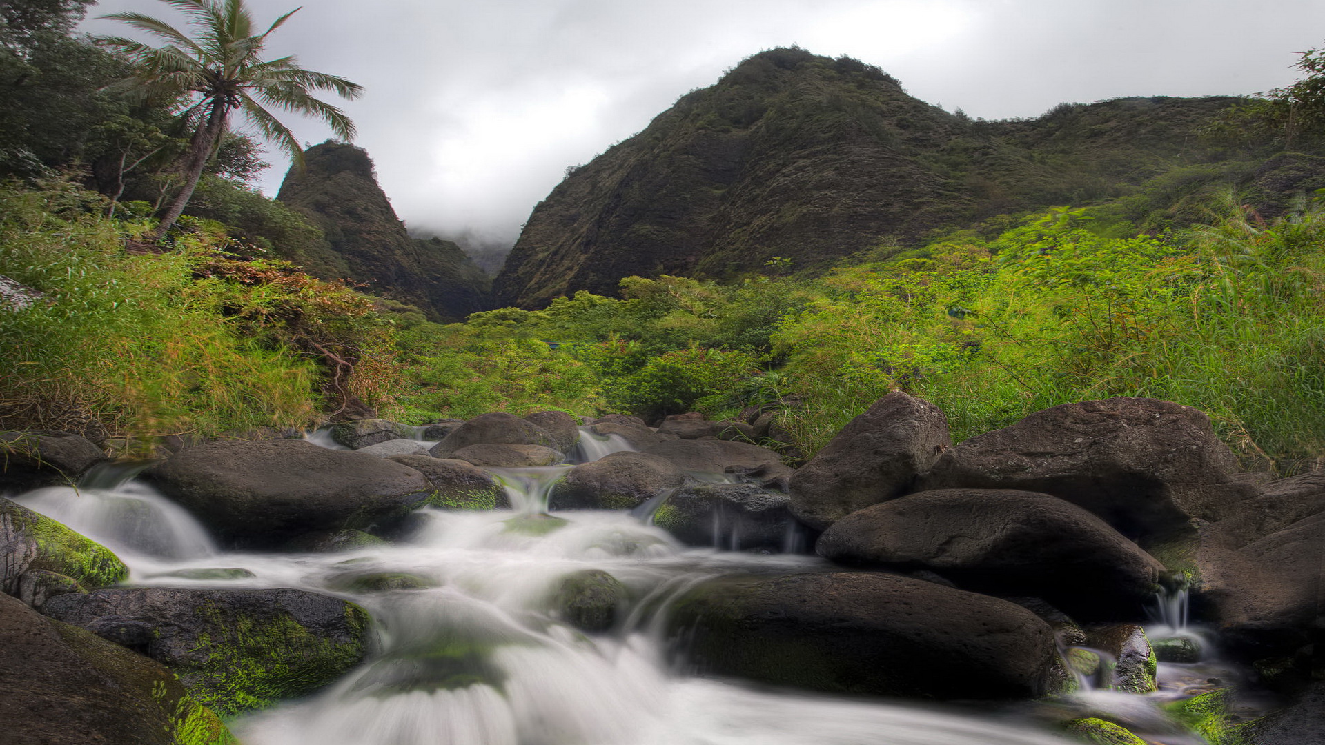 Скачать обои для рабочего стола Пороги горной речки и фото