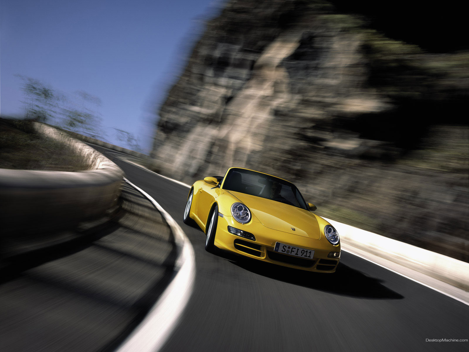 Скачать обои для рабочего стола Porsche 911 жёлтая на дороге и фото