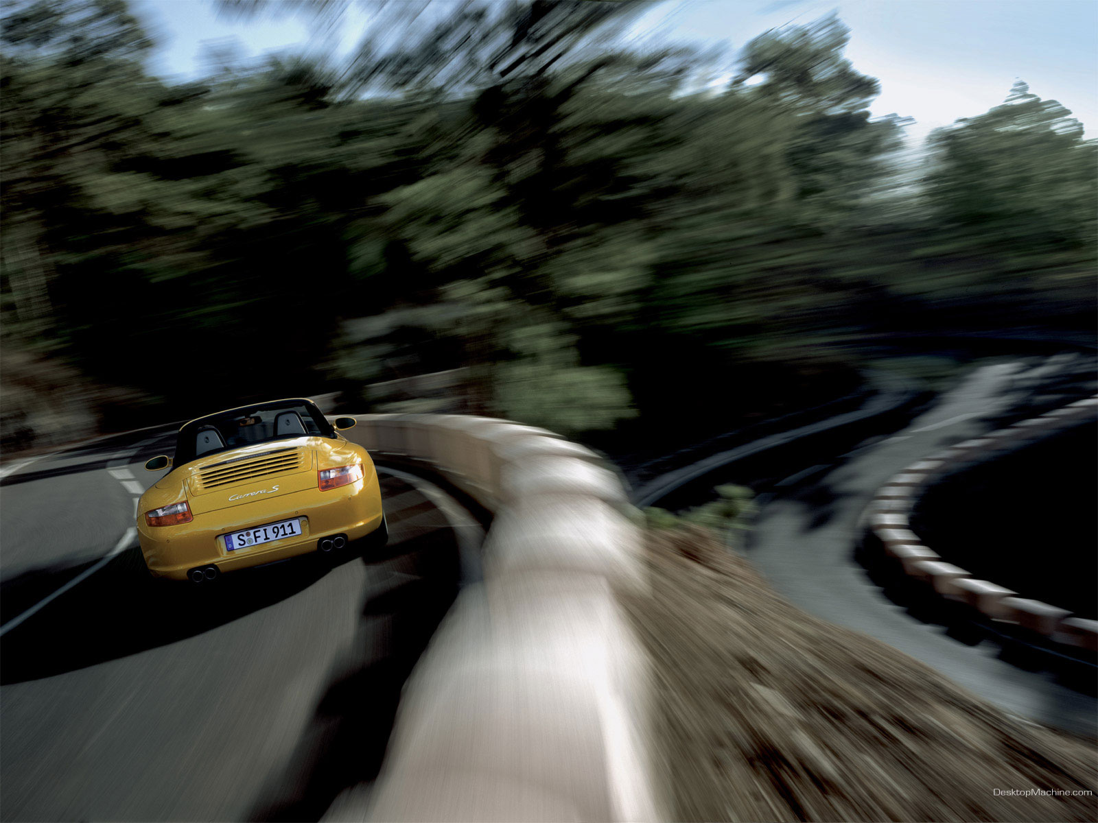 Скачать обои для рабочего стола Porsche 911 жёлтая на скорости и фото