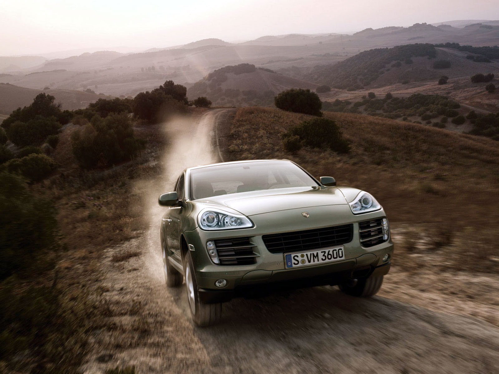 Скачать обои для рабочего стола Porsche Cayenne на грунтовке и фото