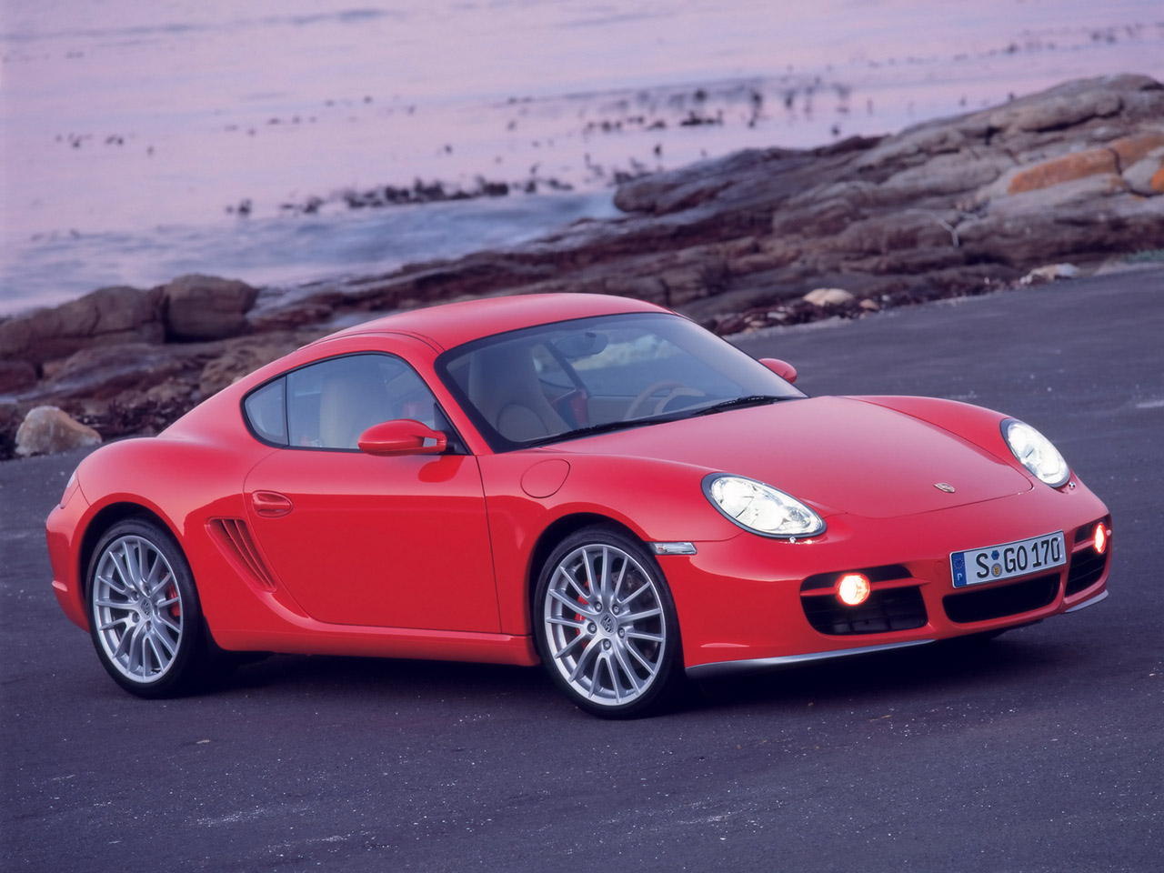 Скачать обои для рабочего стола Porsche Cayman S Production Red SA Shore и фото