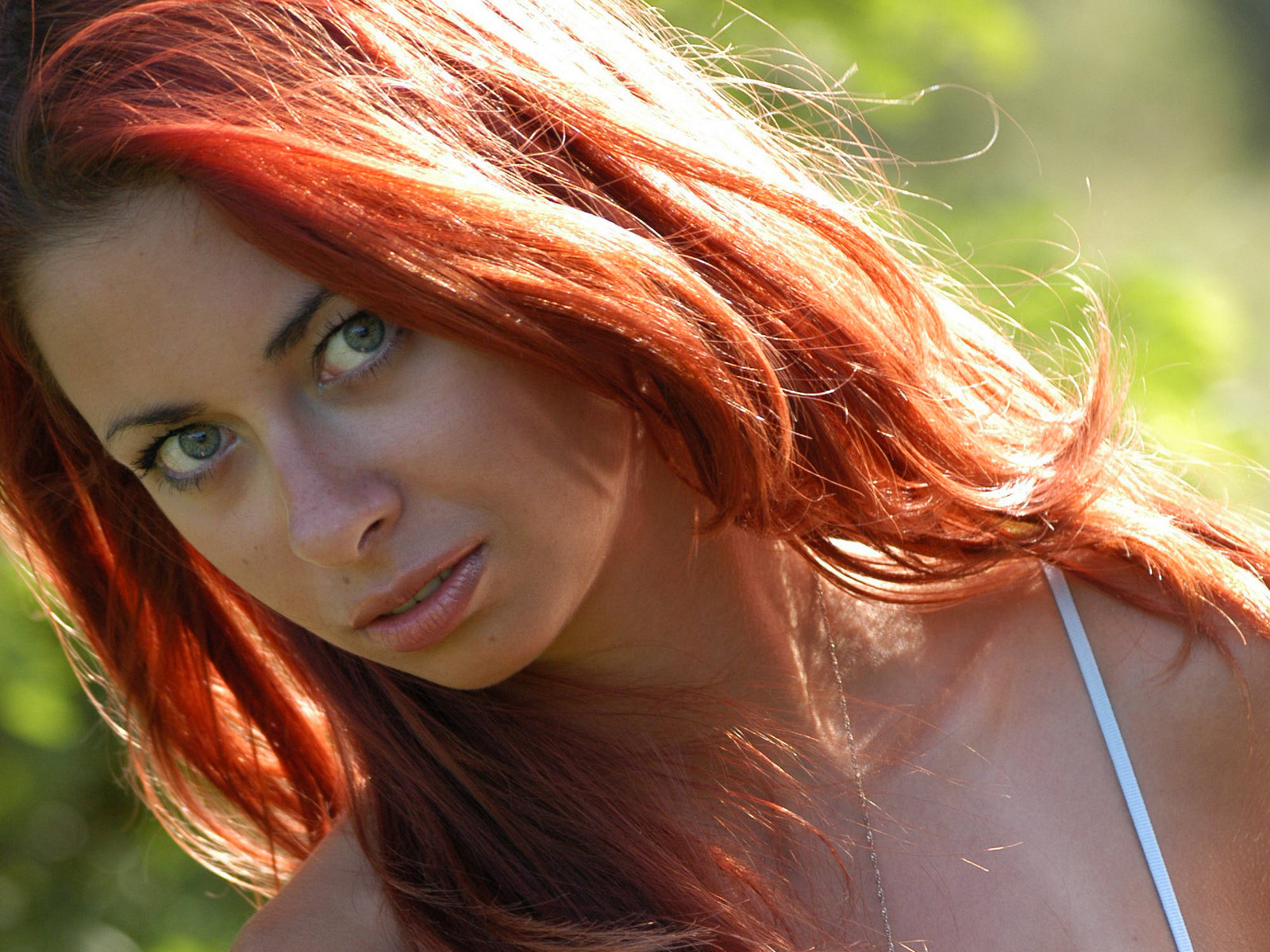 Скачать обои для рабочего стола Портрет девушки с каштановыми волосами и фото