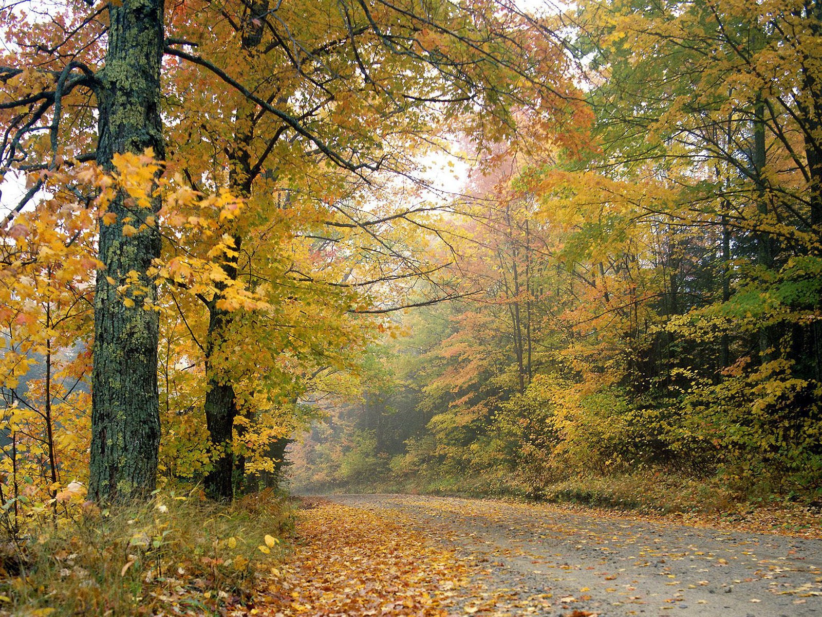 Похожие обои на Пожелтевшaя листвa осенью на деревьяx у дороги: