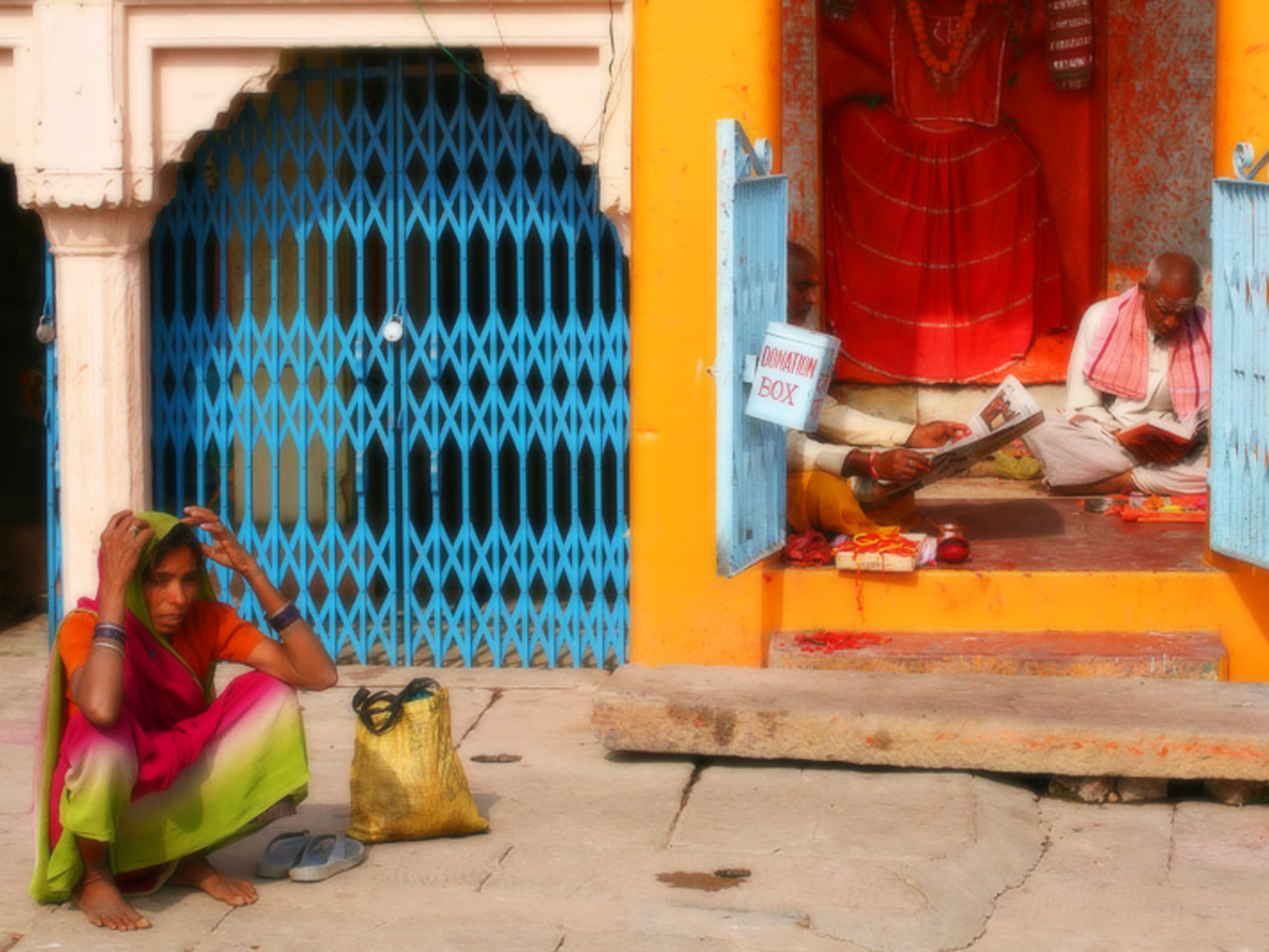Скачать обои для рабочего стола Пожилая индиянка у порога и фото