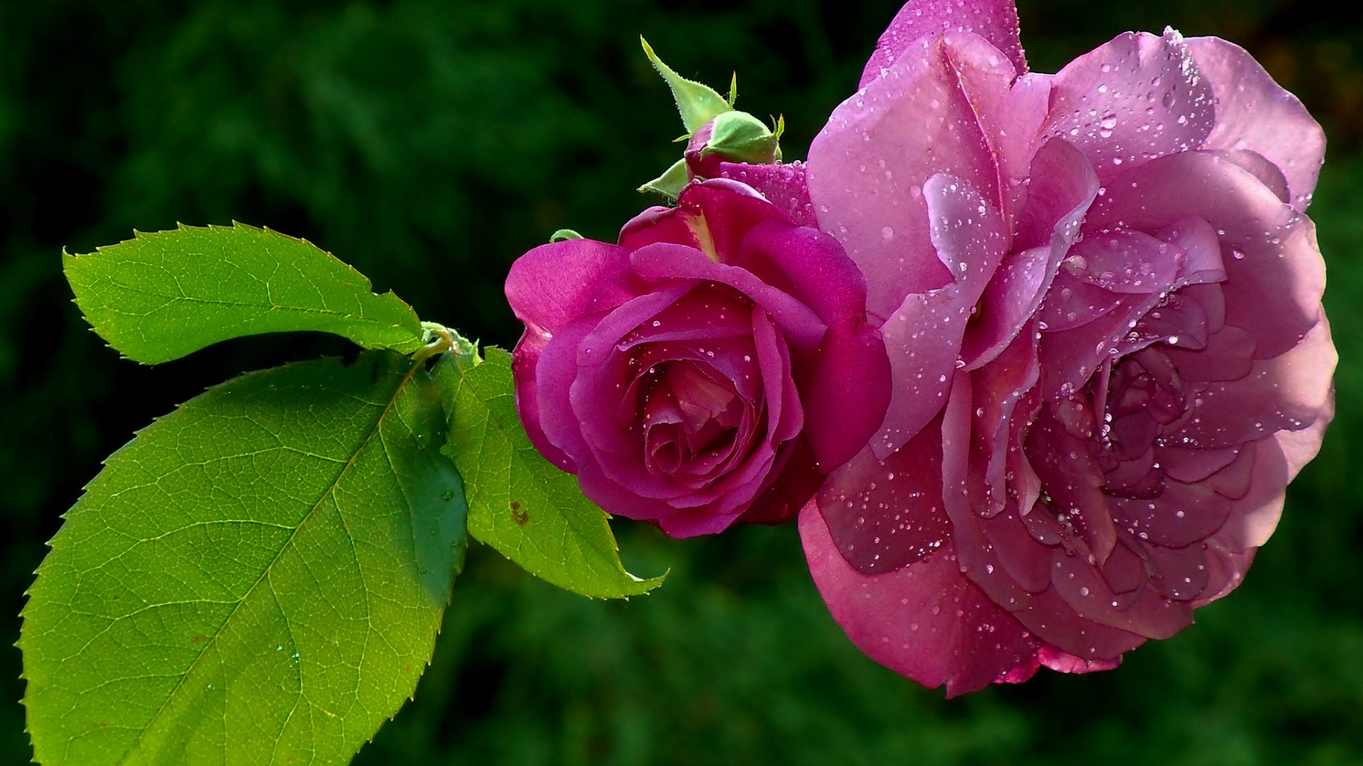 Скачать обои для рабочего стола Прекрасная алая роза в росе и фото