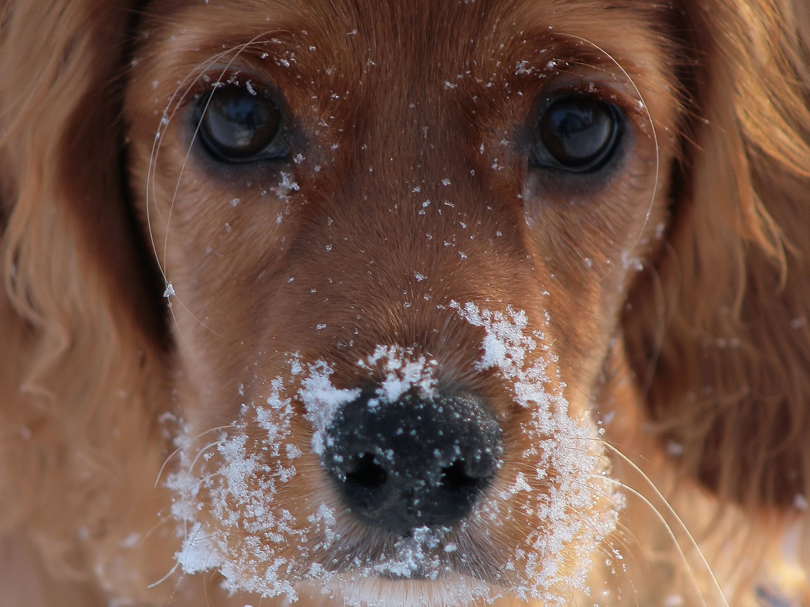 Скачать обои для рабочего стола Прелестная морда в снегу и фото