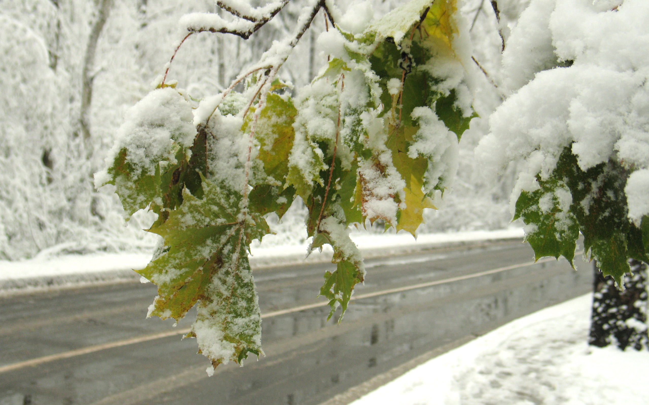Скачать обои для рабочего стола Преждевременный снег, мокрое шоссе и фото