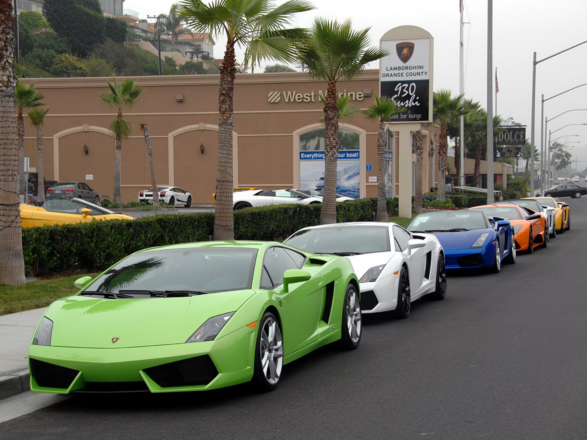 Скачать обои для рабочего стола Припаркованные цветные ламборджини и фото