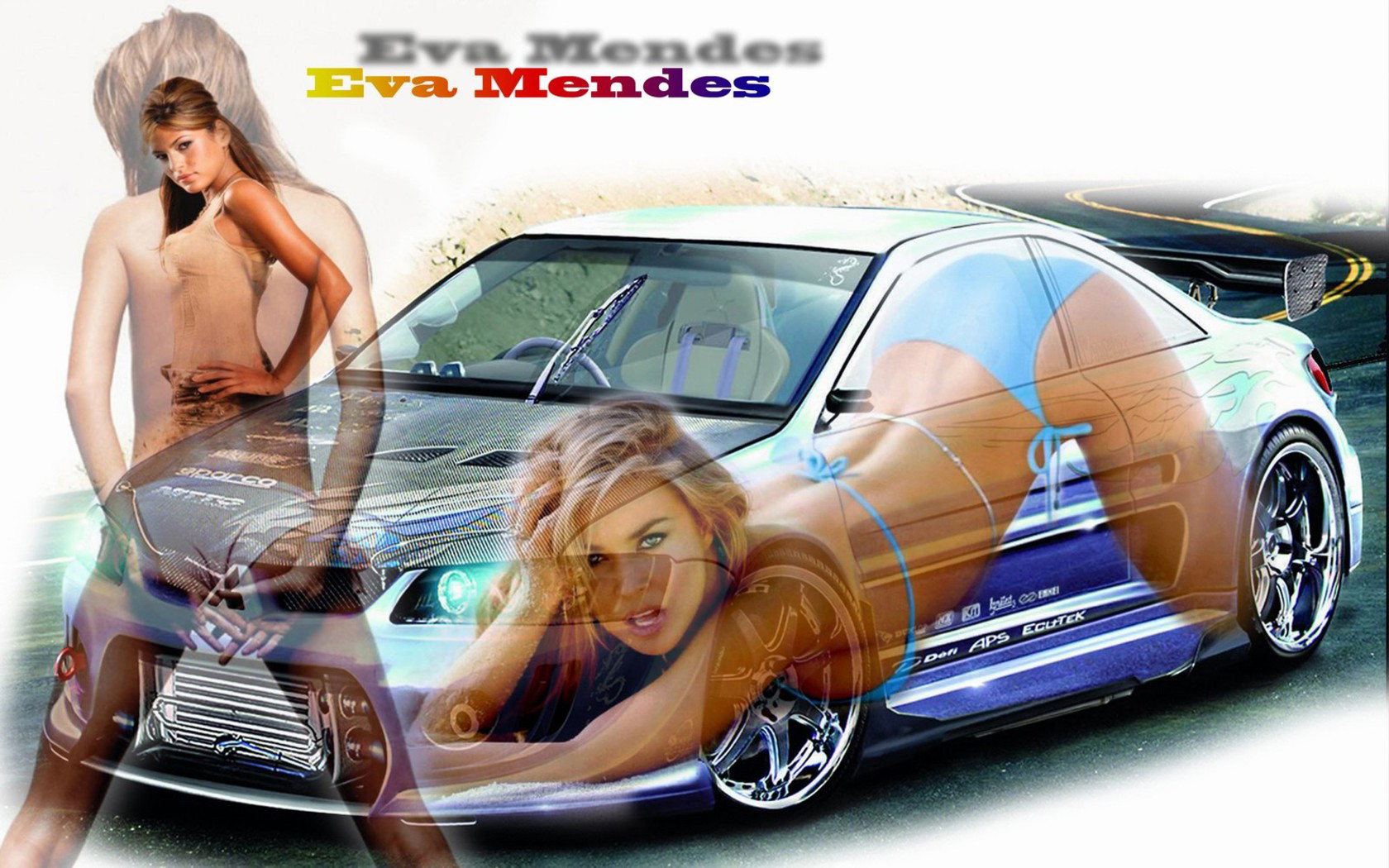 Скачать обои для рабочего стола Проекция Евы Мендес на автомобиле и фото