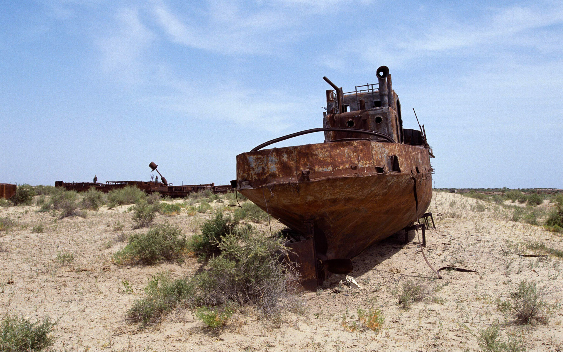 Похожие обои на Проржавевший корабль выкинуло на берег: