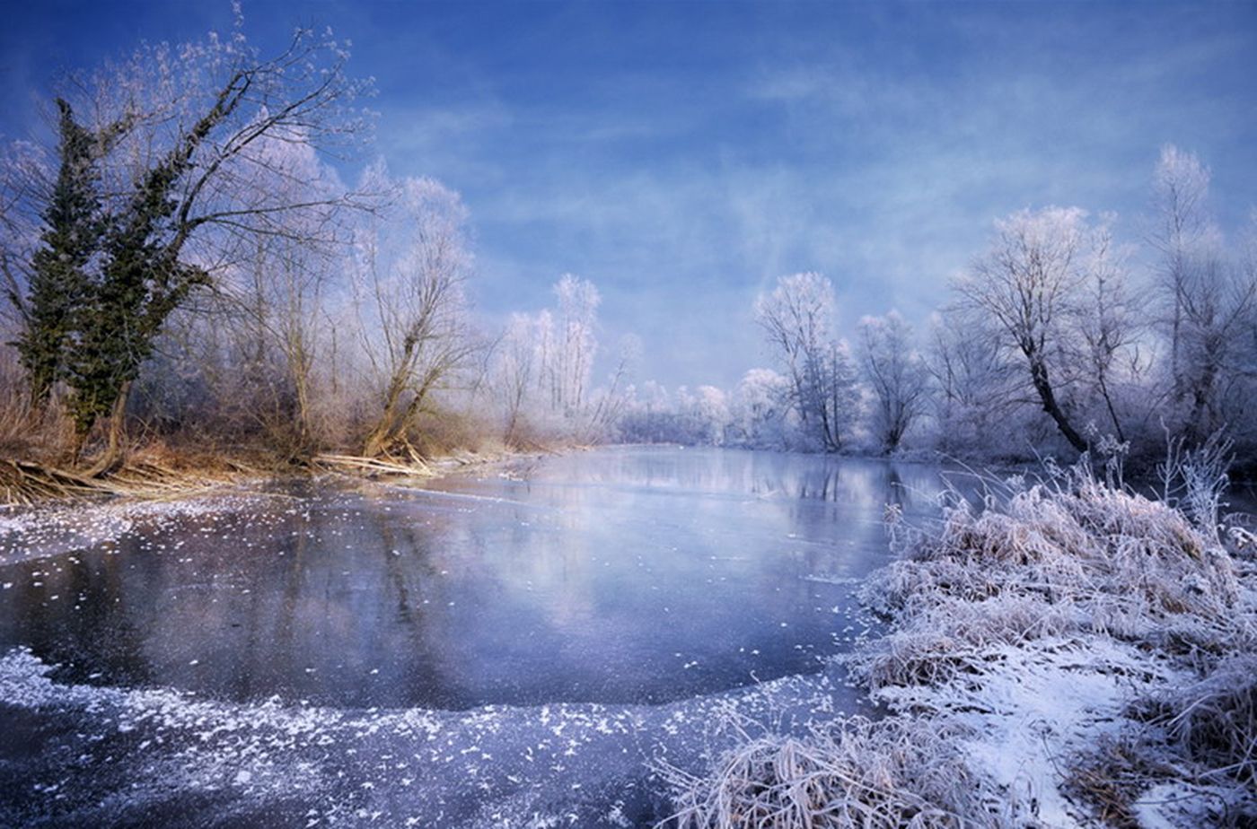 Скачать обои для рабочего стола Пруд в снегу и фото