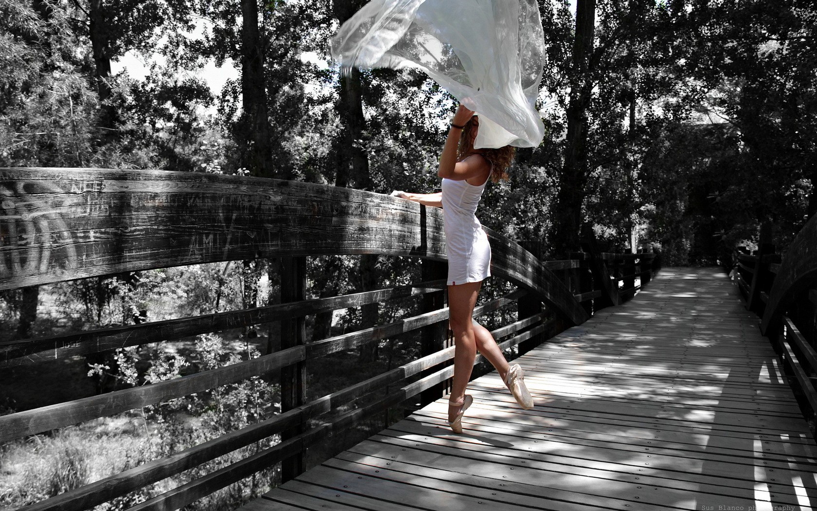 Обои Прыжок балерины на мосту