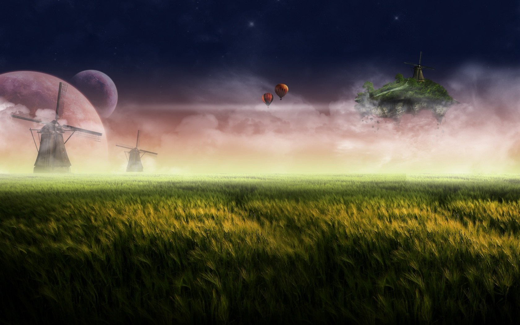 Скачать обои для рабочего стола Пшеничное поле и призрачное небо и фото