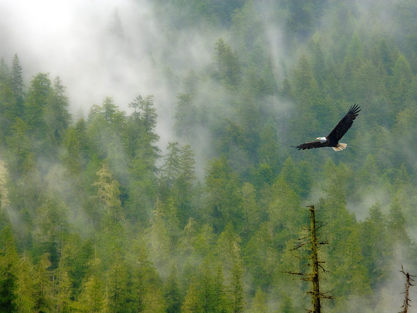 Скачать обои для рабочего стола Птица на фоне леса и фото